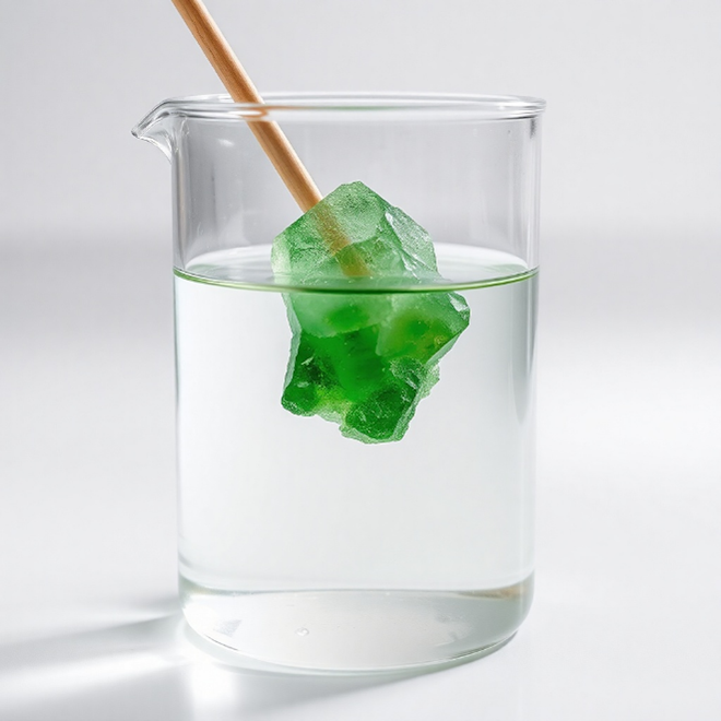 - التحريك (Stirring): يمكن أن يؤثر تحريك المحلول بشكل واضح في نمط نموّ البلّورات، إذ يسهم التحريك المعتدل في تحقيق توزّع حراري منتظم ونموّ منتظم للبلّورات، مع الحدِّ من ظهور نوى غير مرغوبة. وقد يؤدّي التحريك الشديد إلى زيادة تكوّن النوى، ومن ثم إنتاج بلّورات أصغر حجمًا10.