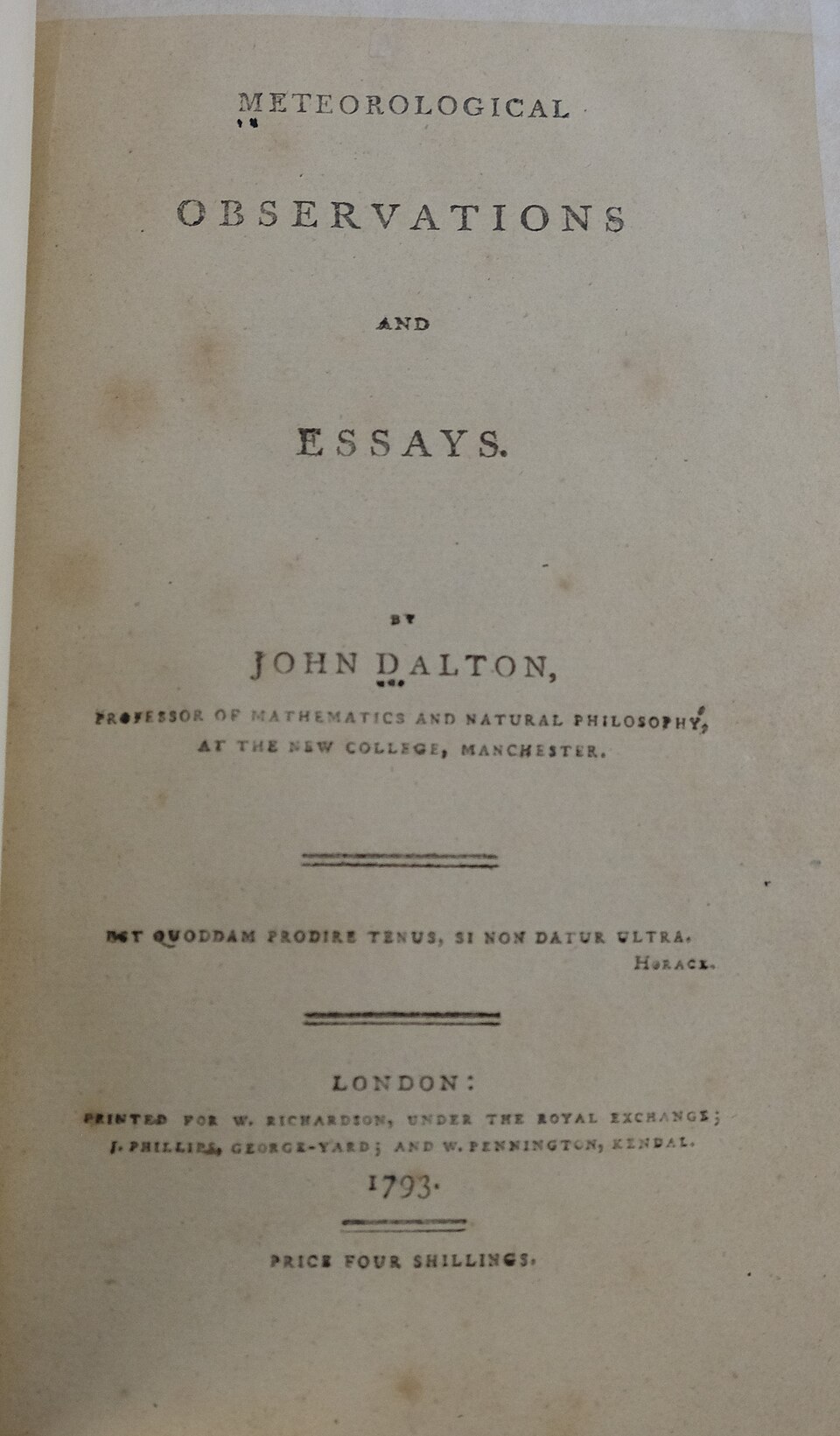 Dalton, John. Meteorological Observations and Essays. London: Harrison & Crosfield, 1834.