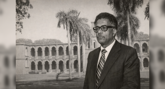 يوسف فضل حسن، المدير المؤسّس لمعهد الدراسات الأفريقية والآسيوية.المصدر: أحمد إبراهيم أبو شوك، المؤرخ يوسف فضل حسن: رصانة الكسب وجزالة العطاء (الشارقة: معهد أفريقيا، 2023)