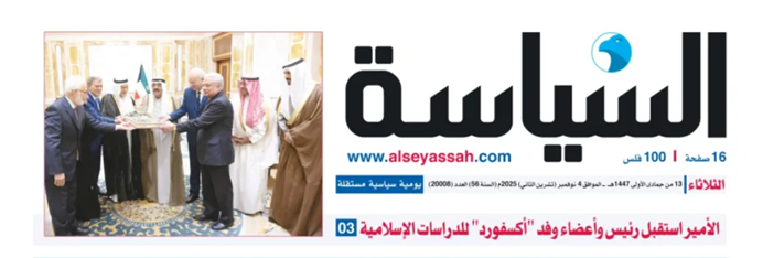 ترويسة جريدة السياسة الكويتية 2025. السياسة. 4 تشرين ثاني/ نوفمبر 2025.